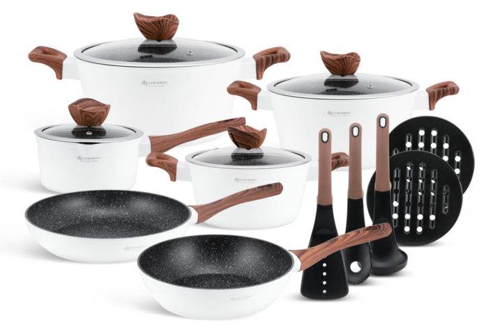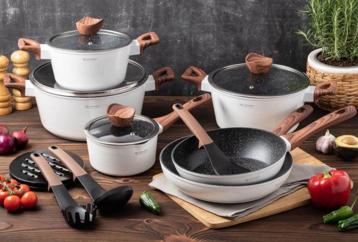 Powłoka: ceramiczno-marmurkowa, dodatkowo powleczona nieprzywieralną powłoką non-stick, wolna od szkodliwych substancji PFOA
