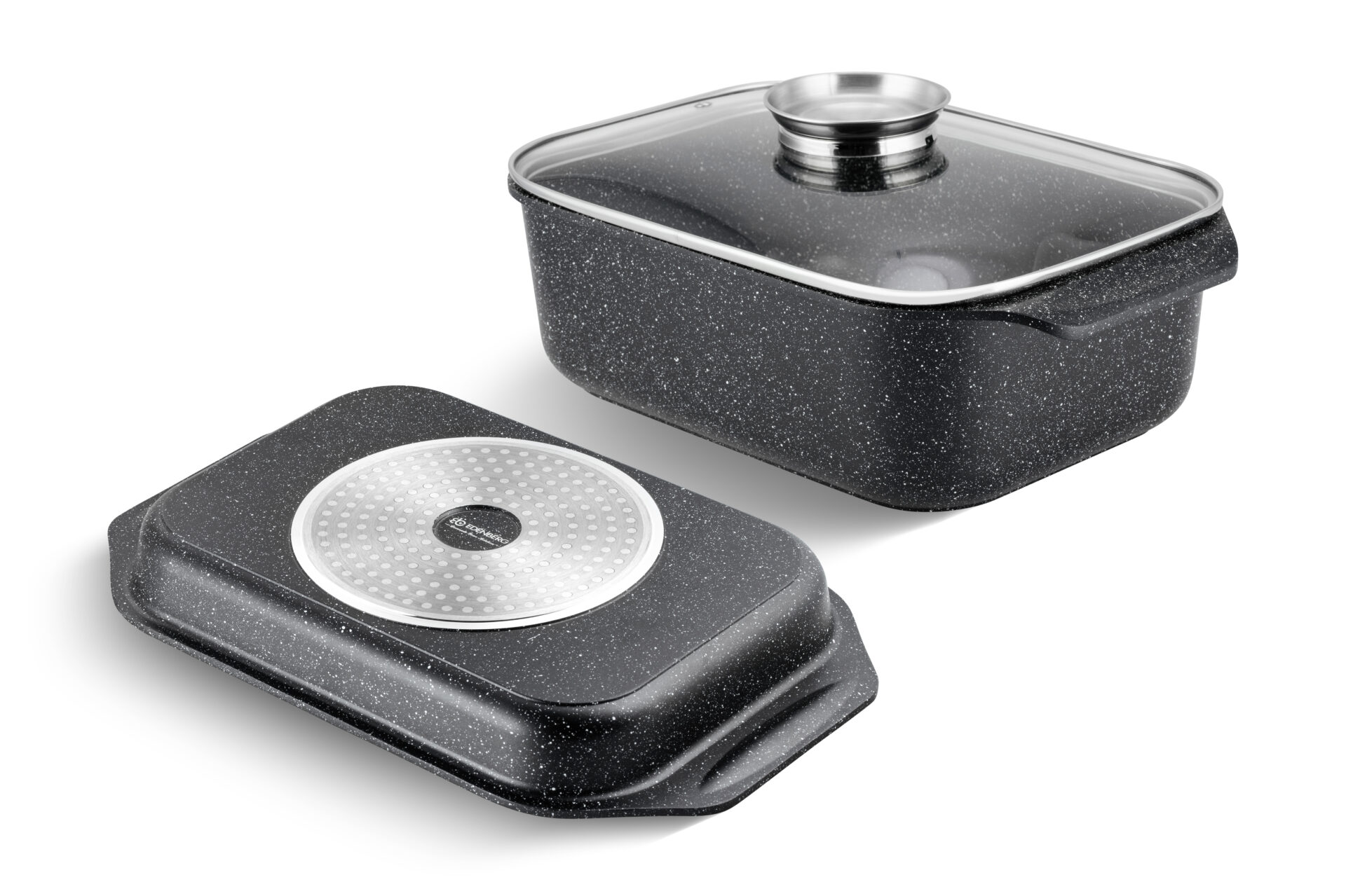Pokrywki: hartowane szkło + pokrywa z funkcją patelni